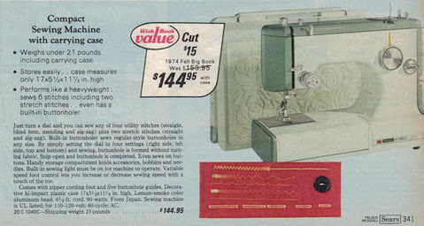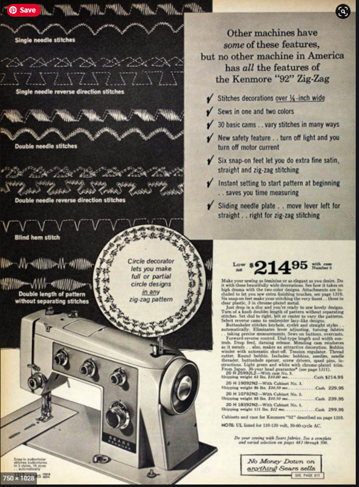 Sears Catalogs linkI do NOT own the copyright on any of these photos, Sears owns the copyright to all of their advertisements and catalogs, I provide them here as part of researching and learning about these wonderful vintage sewing machines. Because they are photos of magazine advertisements, and catalog ads, they may not be super clear, but I tried to make them as readable as possible.